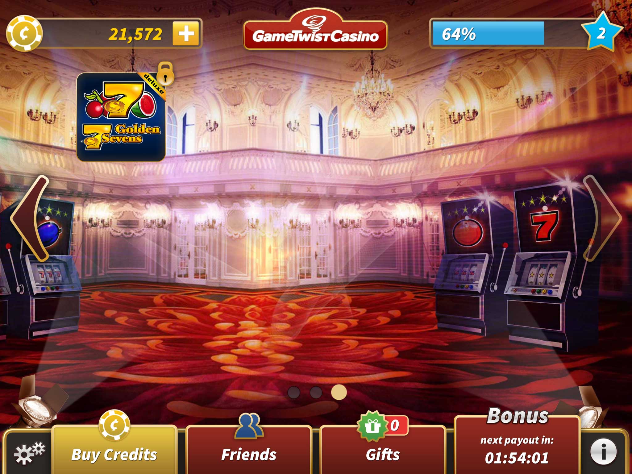 GameTwist Casino is a multi-themed slots package. Unlike some similar multi-slot apps, there is a progression system that requires you to level up to unlock more slots. Starting out with 20,000 credits and three slots unlocked, you’ll gain levels and progress through the slots available.