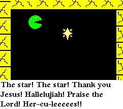 Just like Speed Cookie. It’s pacman but you go fast (speed) and it has nothing to do with cookies (cookie) get it? Speed Cookie. The point of the game is to get to the star thing without hitting the monster things. By the way, some help files just crack me up, so i put a lot of stuff from this one in here.
