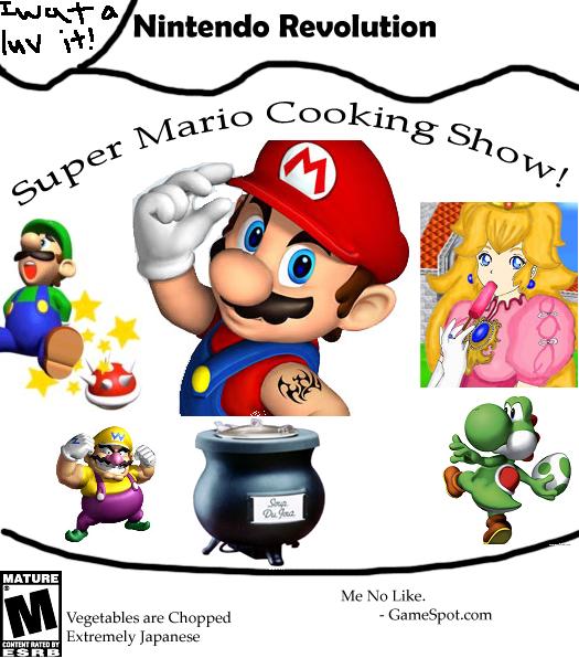 Media, Pictures, Games, Fake Games Fake Game: Super Mario Cooking Show! (Wii) October 5, 2007 davepoobond (DPB) Leave a comment Share this:EmailFacebookTwitterMoreRedditTumblr Related