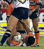 The other year in Aussie Rugby it was Sydney Tigers vs the Cowboys. John Hopoate in the Sydney Tigers tackles one of the footballers in the Cowboys and sticks his fingers right up his date! ๐ And it was caught LIVE on TV :cheesy: ๐ :cheesy:!!! And also made the papers too, front cover big picture of Hopoate with his fingers right up that poor bloke’s date! Hopoate has been known for datefingering other footballers before, and as a result of this incident got 12 months suspension hehehe :grin:!!! Hopoate is now known as either ‘brown fingers’ or ‘date fingers’!