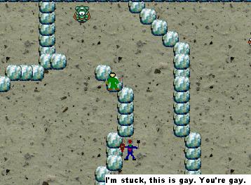 The third planet is a desert, ruled by annoying scorpions which you can squish by just stepping on them. Their granddaddies take a lot more firepower to destroy, however. At some points guys fly around in crudely built helicopters trying to machine gun you down, but they can be shot down with two blasts from the sniper rifle or a shot from the tank’s cannon. When you drop into the secret bunker, though, things really start to kick up.