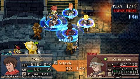 The battle system has become much more action-oriented. No longer do you have to run right up to an enemy and be right next to them to use your weapon. The battle system allows for you to strike at an enemy even if they’re not in your range. Though in writing it may seem like it’s sort of a dumb thing to mention, in actual gameplay, it expands the amount of “freedom” one has during a battle, by not being restricted in their attacks. Though only the X button is used for every single attack, you can hold it down for a charge attack, or tap it repeatedly at the right time to inflict extra damage. Even though it would have been nice to toss in a second button for a different kind of attack, for instance a light or heavy attack, to increase the versatility of the battle system (as well as having more complex combos), it’s really the only thing to complain about when it comes down to it. The Circle button is used as defense, and the Square button is used for activating a special attack, which will be described later on. That is the battle system in a nutshell – but what makes it fun is how fast-paced it is and how hectic a battle can become, especially in the later stages of the game.