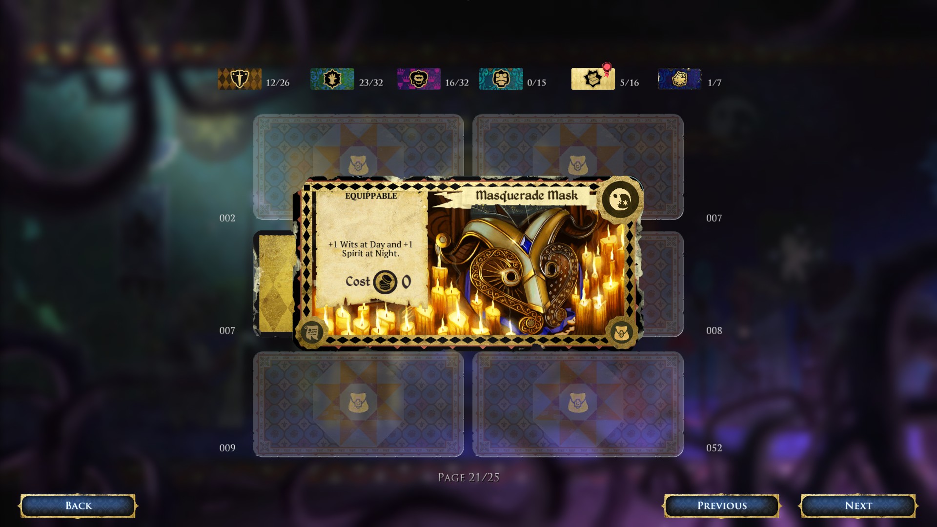 A single game can last anywhere from 20 minutes to an hour depending on how slow plays are. Tactics will shift several times during the game depending on others’ progress. The game board’s setting always takes place at the foot of the King’s castle, and is shuffled at every new game, so the plots will be in different places each time. As of now, there is also a “winter theme” of the board where snow covers the entire board, and it seems like other themes could eventually be developed. While there are no alternate locations to play, they wouldn’t make much sense in the context of the existing story conflict unless something new were set up. They could easily expand on the game with more cards, and extra story to set up new maps would also be a nice addition. As you play the game you’ll unlock more pre-game perks which can customize your play style. Finding all of the cards (there are around 130) is also very satisfying as you try to complete your card gallery.
