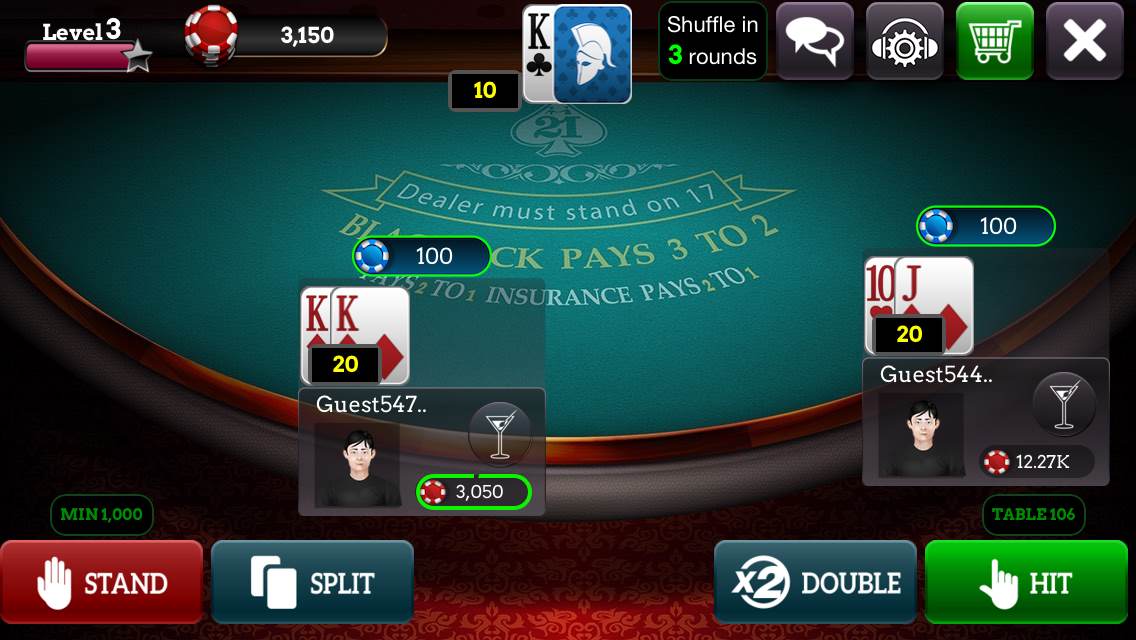 A funny aspect of the game, though I’m not sure how much it actually affects the gameplay, is that you or the other people at the table (including the dealer) can draw identical cards. One game I drew two Five of Diamonds in the same play and although the game “shuffles” the cards after a certain amount of time, I’m unsure if this means they combined multiple decks or what. This basically makes any inclination to “card count” pointless, if you were able to. There are a couple of bonus games outside of the Black Jack game that requires Diamonds. Diamonds are attained by purchase primarily, and you earn a lot more Credits with these bonus games.