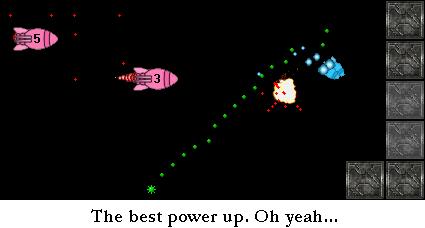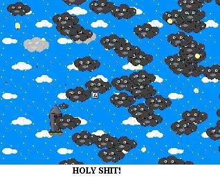 Ufo! – You’re a rocket. And you’re trying to dodge the mean ol’ rain clouds. No problem, you can just blast them away with your 3-way machine gun! HOORAY! You also get 5 rockets that don’t do anything better than the machine guns.