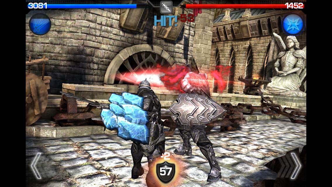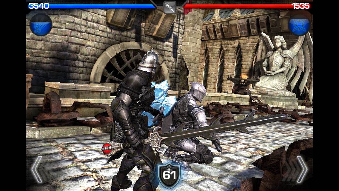 Infinity Blade is everything that is wrong with traditional gaming trying to make its way on mobile platforms. It’s an on-rails dungeon crawler with some point-and-click (or is it point-and-touch, now?) elements to it. It takes the feeling of freedom away from the player since you aren’t necessarily able to explore wherever you like and can only progress in a few paths that all ultimately end up in the same place. As opposed to a traditional console game where you’re able to move by yourself with ease, the designers decided it was best to not allow you to have the frustration of moving in 3D with only a touch screen and completely removed the ability to freely control your character. During battles, all you do is swipe your finger to hit the enemy with a sword, block, dodge, or use your overpowered specials (a stun and various magic spells) that can help you win a battle. Battles break up your combos whether you like it or not by inserting a five second cutscene at every third of the enemy’s health. The camera angle is also changed so that you become disoriented to limit your ability in fucking up the enemy again right off the bat.