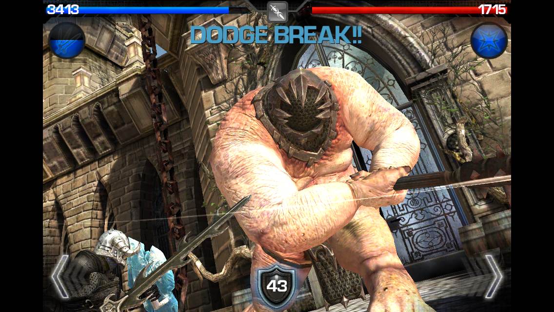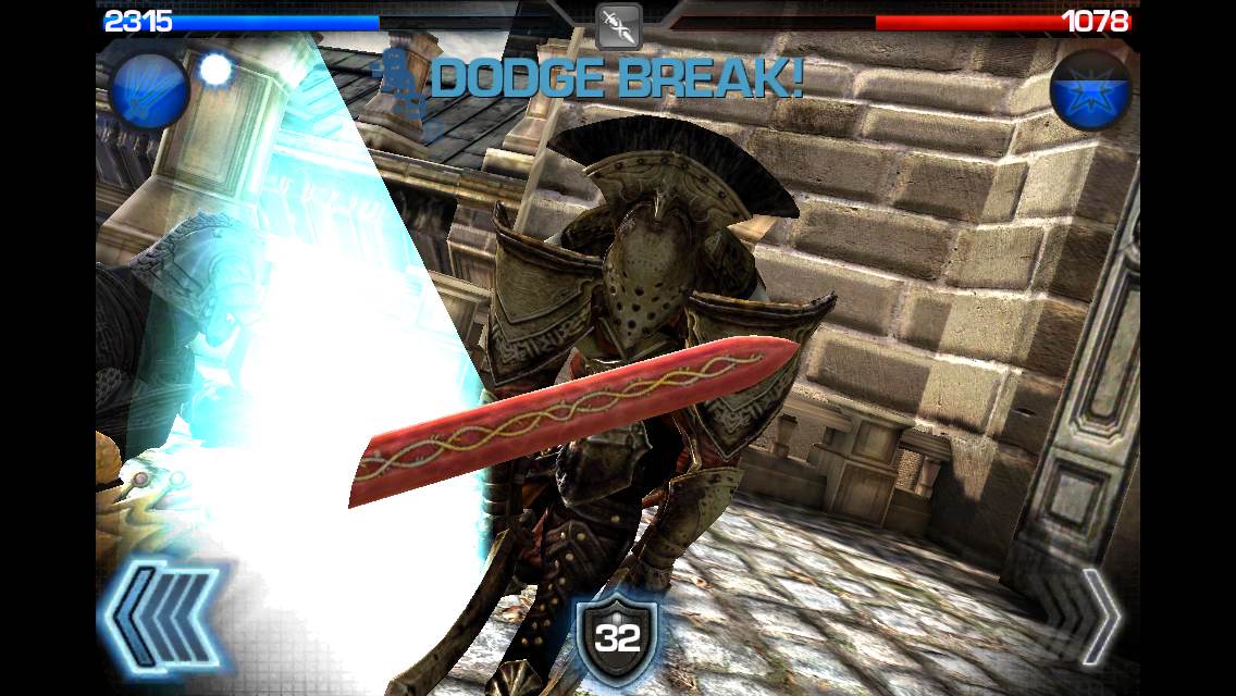 The touch screen is no replacement for buttons, and this game makes it all too apparent that buttons are an evolution of necessity – it is easy to know when you push something it will react. However, when you swipe your hand across the screen or push a touch-screen-button the reliability of the action that you actually want to happen is around 85% rather than 99%. My biggest problem with the game is that the touch screen “buttons” in the game are not reactive to my lifeless hands. For some reason I always have trouble conducting enough electricity or heat or jazz in my hands to make something work on my touch screen. Don’t ask me why, it just happens. No matter how many times I smack my finger down on the touch screen to dodge, if it isn’t going to work, it isn’t going to work. The other annoying thing about Infinity Blade is instead of pushing a button and an analog stick to swipe; you have to move your whole hand, wrist, and arm to do one swipe. Essentially, you are playing Fruit Ninja on steroids, and I really wish there were buttons for this game because I’m going to get tendonitis in my shoulder if all games end up being like this.