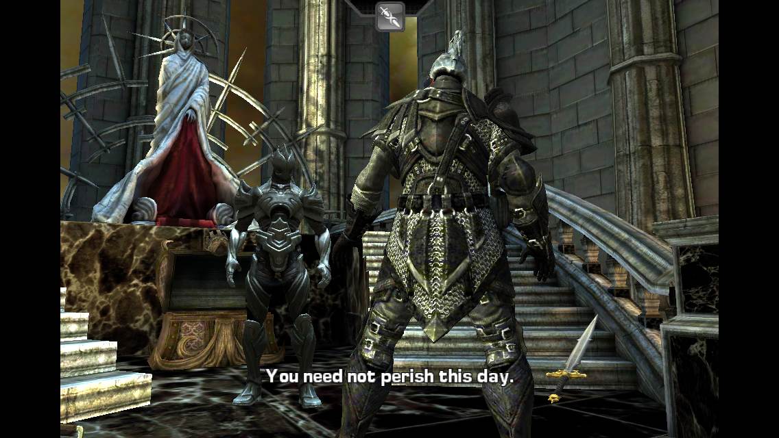 On the other side of Infinity Blade, you have a game that aspires to be something greater than it is. “Amazing” graphics, notwithstanding, you’ve got a unique experience with Infinity Blade that isn’t replicated very often in mobile gaming right now. I would align the graphics in the game to early-PlayStation 3 quality, but since the image is shrunk down to a 5 inch screen, that would be a bit too much credit. It’s probably more like late-PlayStation 2 graphics shrunk down with cooler lighting. However, the game will make you say “hey this looks pretty cool” …and then you get used to the graphics and it kind of doesn’t matter anymore. Except when you notice that the battery on your phone drains faster while playing than your phone can charge if you have the foresight to have it plugged in while playing.
