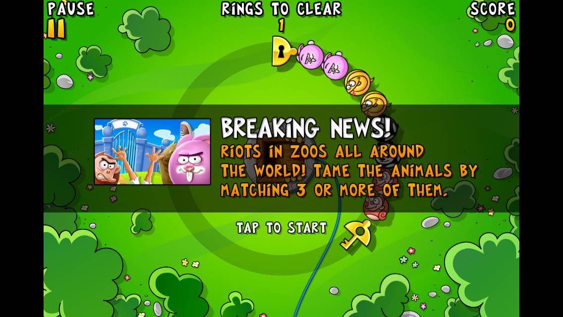 The essential control mechanic is to tap where you want to send one of your spherical animals, and in doing so, try to match them up with the others and try to make combos, like many other Match-Three games. What makes this game a little bit unique is that the crazy rings will rotate, expand, or travel around in a circle, so you will have to pay attention to those elements in order to not misplace any of your spherical lions, frogs, snakes, pigs, or other animals. You can also have multiple crazy rings which will also rely on the speed of each ring’s rotation if you want to match any animals with the outer rings, as they can all be rotating and expanding at the same time.
