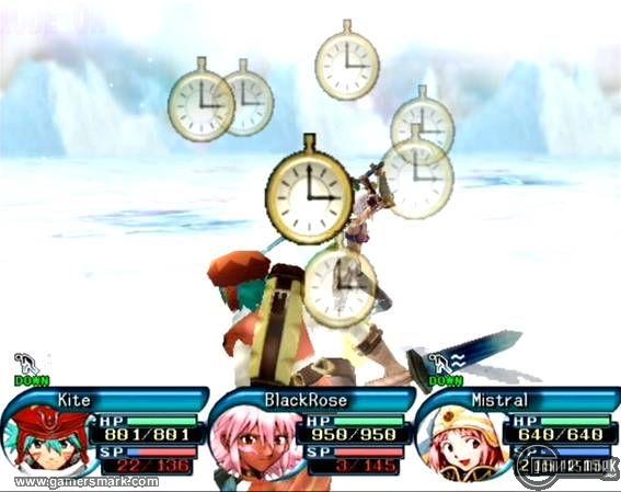 The battle system has become much more action-oriented. No longer do you have to run right up to an enemy and be right next to them to use your weapon. The battle system allows for you to strike at an enemy even if they’re not in your range. Though in writing it may seem like it’s sort of a dumb thing to mention, in actual gameplay, it expands the amount of “freedom” one has during a battle, by not being restricted in their attacks. Though only the X button is used for every single attack, you can hold it down for a charge attack, or tap it repeatedly at the right time to inflict extra damage. Even though it would have been nice to toss in a second button for a different kind of attack, for instance a light or heavy attack, to increase the versatility of the battle system (as well as having more complex combos), it’s really the only thing to complain about when it comes down to it. The Circle button is used as defense, and the Square button is used for activating a special attack, which will be described later on. That is the battle system in a nutshell – but what makes it fun is how fast-paced it is and how hectic a battle can become, especially in the later stages of the game.
