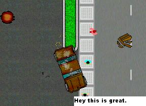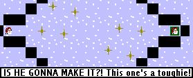 The graphics are actually the strong point, and only I might add, about this game. I actually like how the “level” things appeared out of blocks flying out of nowhere. But the sprites were all ripped from another game, the blocks are nothing more than blocks, and the gnarly background makes you want to have a seizure, though you really can’t…so it’s pretty bad.
