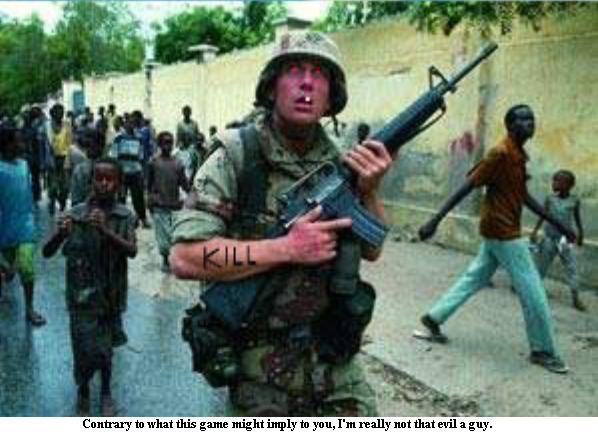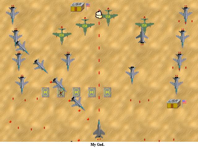 The War Against U.S. Terror is probably the only Game Maker game made to make a political statement. But don’t hate it because it tries to be anti-American. Hate it because its so fucking hard. There’s millions of planes and units that the U.S. has against your own terrorist fighter plane, and believe me you’re going to die in real life before you ever beat all the levels in this game. The main point in the game is to help terrorists fight off the U.S. in all the major wars/battles/confrontations of the last 50 years or so, such as Iraq, Afghanistan, and Somalia. A few that are probably soon to come are tossed in as well, like Iran, North Korea, and Indonesia.