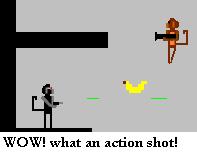 Never before in a game, do you have a bazooka thing that shoots spinning bananas that blow up ninja monkeys, piles of goo, stupid things you can’t shoot, and hover monkeys from a boat, until this game. This game takes you through lush scenery, like…umm…black…steps, and waterfalls and trees that you can’t climb (even though you’re a monkey)