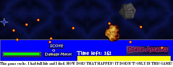 Yet again, another failure in the Space Attacks series. But this time around, when you die you don’t go to the credits screen. Hooray! And there’s also different difficulties, so I guess I have to give points for that. More like 1 point for all the improvements, that shouldn’t have been improvements but been in the first one already. 3/10.