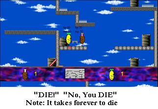 wow…where to start? i dont know what to say. In this game, you’re a cyclops….and….you shoot…..a gun….that’s about it. There’s only 2 modes, a Vs. mode (against someone on the same computer, using the same keyboard) and “training” in which you shoot a target, that half the time is hard to get to in the time allowed or is somewhere you cant get to.
