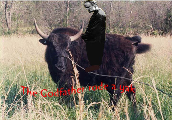 Media, Pictures The Godfather Rode a Yak September 20, 2007 stimpyismyname Leave a comment Share this:EmailFacebookTwitterMoreRedditTumblr